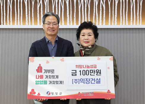 (주)익장건설(대표 김연희)과 영덕보호관찰소협의회 영양지구(회장 이찬직)은 1월 15일 영양군을 방문해 어려운 이웃을 위한 성금 각 100만 원을 전달했다.