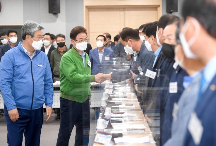 간담회 중 이철우 도지사가 직접 주재하여 진행한 ‘민생 애로사항 건의 및 답변의 시간’에는 코로나19로 치솟은 물류비로 인한 매출감소, 외국인근로자 인력수급난 등으로 어려움을 겪고 있는 뿌리산업 기업체 대표들의 애로사항 건의가 이어졌고, 도지사와 관련 전문가들은 현장에서 격의 없이 소통하며 애로사항을 하나하나 집중적으로 해결했다.