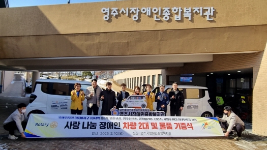 영주시장애인종합복지관은 2월 10일 국제로타리 3630지구 13지역(대표 정재남)으로부터 경차 레이 2대를 후원받는 차량 전달식을 진행했다.