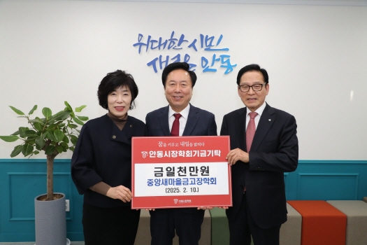 중앙새마을금고장학회(이사장 권오관)에서 10일 안동지역 인재 육성을 위한 장학기금 1천만 원을 ()안동시장학회(공동이사장 : 권기창, 김원)에 기탁했다.