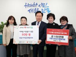 안동시 여성단체협의회(회장 박정숙)는 지난 20일 이웃돕기 성금 50만 원과 지역인재 육성을 위한 장학기금 100만 원을 안동시와 (재)안동시장학회에 각각 전달했다.