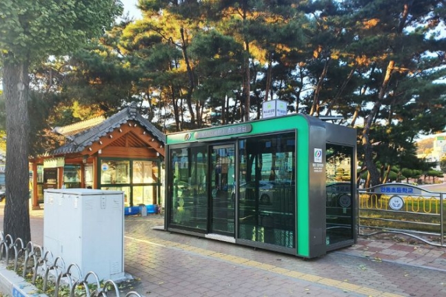 경북도내 첫 시범운영중인 안동시 미세먼지 회 버스 승강장 전경