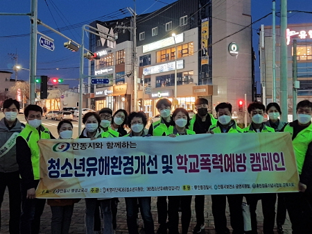 이번 유해환경 점검은 안동시 평생학습원, 365청소년지원단 등 20여명이 참여했다. 코로나19 방역수칙을 준수하며, 청소년 비행 우려 지역인 옥동 일대 집중순찰하고, 숙박업소‧편의점 업주를 대상으로 유해환경 근절 캠페인을 진행했다.