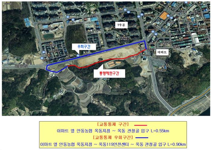 (안동시=경북온뉴스) 김광열 기자 = 안동시는 옥동소로(2-79) 개설공사 시행에 따라 옥동 이마트 옆 안동농협 옥동지점부터 관청골 입구까지 도로통행제한을 실시한다.
