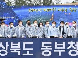 이철우 경상북도지사는 기념사를 통해 “경상북도 동부청사는 동해바다의 미래가치를 재창조해 세계 속의 해양 경북으로 힘차게 뻗어가는 전초 기지로서 신해양 시대를 여는 컨트롤타워이자 동해안권 발전의 전략거점이 될 것이다”며, “동해의 풍부한 해양자원을 활용한 신성장 산업 발굴육성 등 다양한 환동해 전략 사업을 100만동남권 지역민들의 행정수요와 기대에 부응하고경상북도 전체가 균형발전을 이룰수있도록 총력을 집중해 나가겠다”고 말했다.