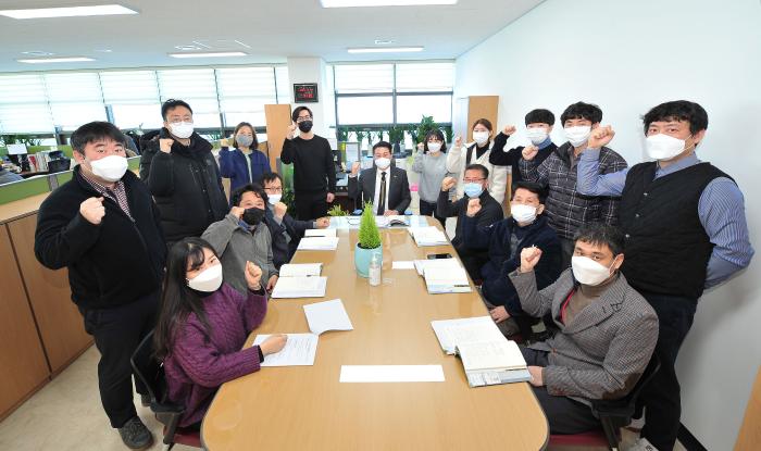 2021년 1월 1일자로 신설된 군위군 지역활력과 직원들이 확신에 찬 결의를 다지고 있다.