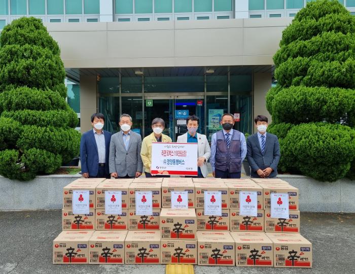 전달식에 참석한 ㈜영양동행버스 서병조 대표는 “코로나19로 인해 야외활동도 잘 못하는 독거노인과 저소득 위기가구에 골고루 전해져 영양버스 임직원들의 작은 정성이 전달되었으면 좋겠다.”라고 말했다.