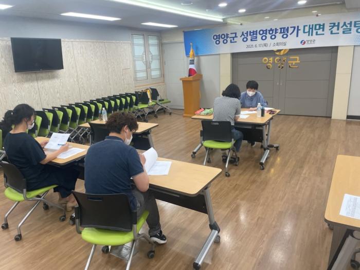 (영양군=경북온뉴스) 임성철 기자 = 영양군은 6월 17일 오후 2시부터 영양군청 소회의실에서 성별영향평가 전문가(컨설턴트)를 초청해 1대1 대면컨설팅을 실시했다.
