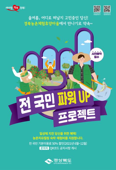 (경북도=경북온뉴스) 김광열 기자 = 경상북도는 코로나19의 장기적인 사태로 침체된 농촌지역의 관광을 활성화하고 심리적·정서적으로 지친 국민들에게 ‘전국민 파워업 농촌관광지원’사업을 통해 힐링할 수 있는 기회를 제공한다.