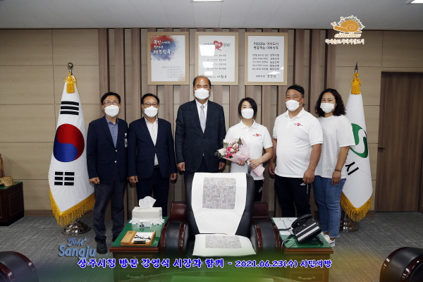 강영석 상주시장은 “국가대표로 선발된 김지수 선수를 진심으로 축하하며 도쿄올림픽이 얼마 남지 않았는데 잘 준비해서 좋은 결과를 얻기를 바란다.”고 격려했다.