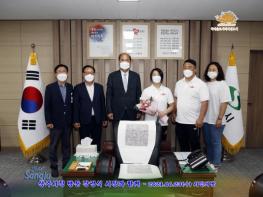 (상주시=경북온뉴스) 김광열 기자 = 강영석 상주시장이 6월 23일 상주시청 시민의방에서 2021 도쿄올림픽 유도 국가대표로 선발된 김지수 선수와 유도감독을 만나 격려했다.