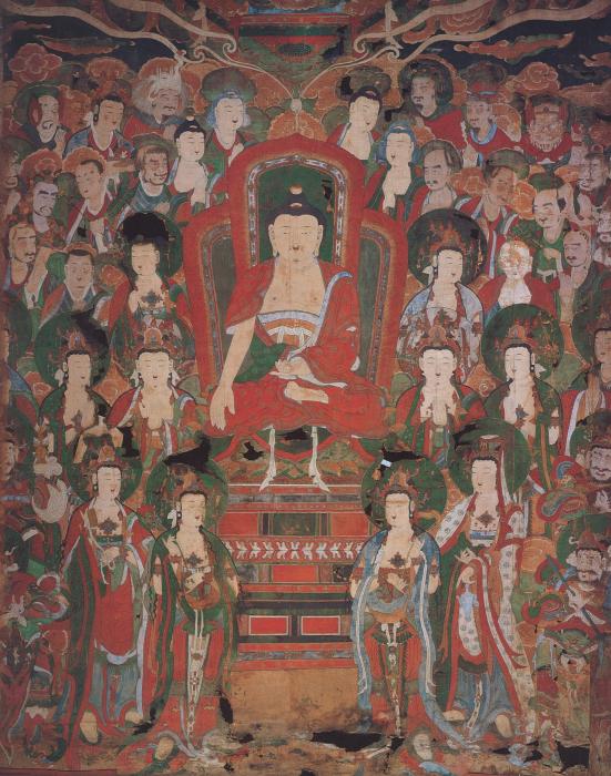 ‘청송 대전사 영산회상도’는 인도 영취산에서 있었던 석가모니불도의 설법 모임을 도해한 불화로, 화면 중앙 석가여래의 좌우에는 문수와 보현보살, 관음보살과 대세지보살, 지장보살을 포함한 8위의 보살로 구성되어있으며, 화기(畵記)의 일부가 마모되어 있으나 수화승 밀기(密機) 등을 통해 불화의 조성연대(1740년 또는 1750년)를 추정할 수 있다.