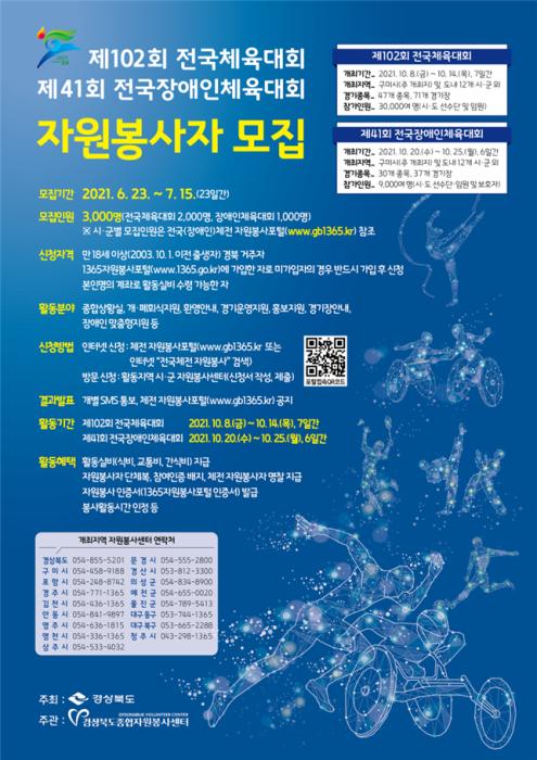 한편 이장식 경상북도 자치행정국장은 “이번에 모집하는 자원봉사자들의 활동을 통한 성공적인 체전행사로 코로나19로 인해 침체된 지역경제에 활력을 불러 일으키고 경북도가 한층 더 업그레이드 되길 기대한다”고 말했다.