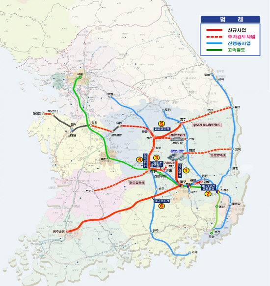 올 4월 초안 공개 후 전국에서 추가 반영 및 계획 변경 요구가 빗발친 가운데 경북도는 줄기찬 노력 끝에 신규사업 5건을 원안 그대로 관철시켰고, 동서화합의 상징인 대구~광주간 달빛내륙철도를 추가검토사업에서 신규사업으로 부활시키는 성과를 이뤘다.