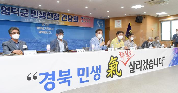 영덕군 현장 간담회에서는 이철우 도지사를 비롯해 이희진 영덕군수,지역의 해양산업 분야 대표 및 기관‧사회단체장 등 40여명이 참석한 가운데 “경북 해양산업 기(氣) 확실히 살리자”라는 주제로 열띤 토론을 펼쳤다.