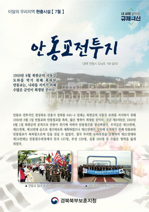 (보훈=경북온뉴스) 김광열 기자 = 경북북부보훈지청(지청장 김덕석)은 2021년 7월 이달의 우리지역 현충시설로 안동교전투지(경북 안동시 강남로 169 일대)를 선정했다.