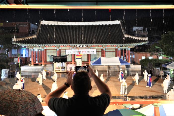 또한 공연이 막 시작하자 마자 장맛비까지 멈춰 가장 민족적인 문화로 재평가 받고, 다음후세까지 계승 발전시켜 문화적 가치를 높이겠다는 송옥순 회장(사) 안동제비원성주풀이보존회)의 집념이기도한 안동의 대표적 문화로 인식되기에 충분했었던 공연으로 기록되는 현장을 지켜봤다.