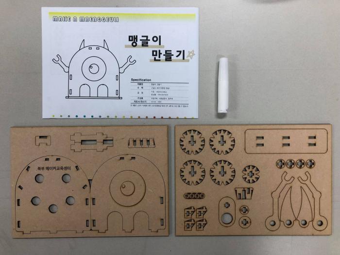 맹글이 오토마타는 36개의 부품으로 구성되어 있으며, 각 부품을 조립하는 과정을 통해 원리를 발견하고, 탐구하면서 산출물을 만들어 낼 수 있다.