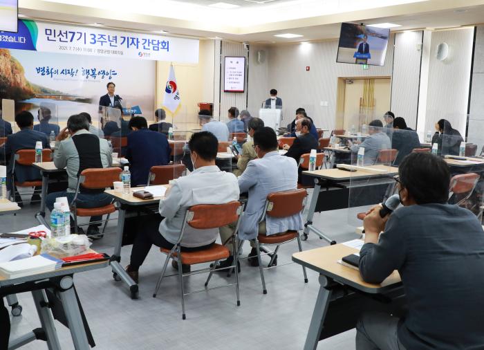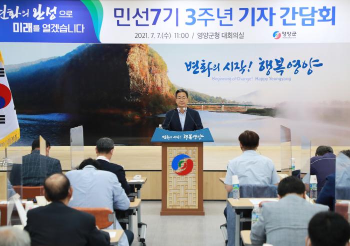 (영양군=경북온뉴스) 임성철 기자 = 오도창 영양군수는 7월 7일 11시 군청 대회의실에서 열린 언론관계자 간담회에서 '민선7기 3년간의 군정 성과와 향후 군정 방향'을 발표했다.