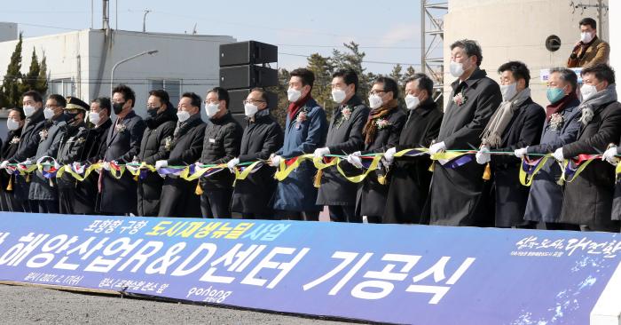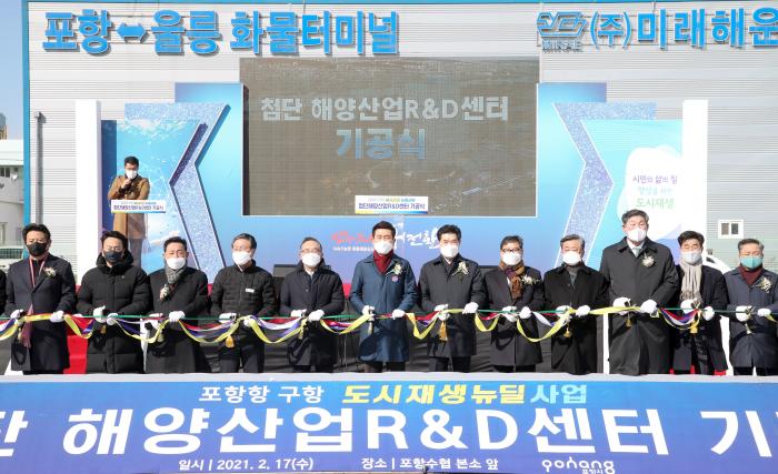 (경북도=경북온뉴스) 김승진 기자 = 경상북도는 17일 포항 남구 송도부두에서 하대성 경제부지사와 이강덕 포항시장, 도의원 등이 참석해 첨단 해양산업 R&D센터 조성 기공식을 가졌다.
