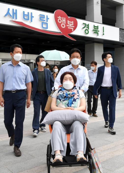 (경북도=경북온뉴스) 임윤분 기자 = 경상북도는 19일 29살에 교통사고를 당해 지난 30년간 전신마비 척추장애로 생활해 오신 김양주씨를 도청 신청사에 초청했다.