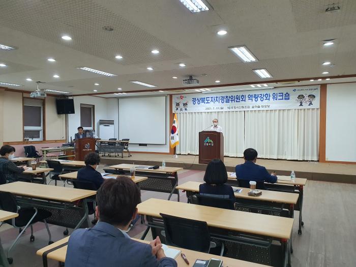 (경북도=경북온뉴스) 김승진 기자 = 경상북도자치경찰위원회는 19일 포항시산림조합 숲마을에서 경북자치경찰위원회 위원 및 사무국 직원들과 함께 '제7월 정기회의와 자치경찰위원회 업무역량 강화 워크숍'을 개최했다.