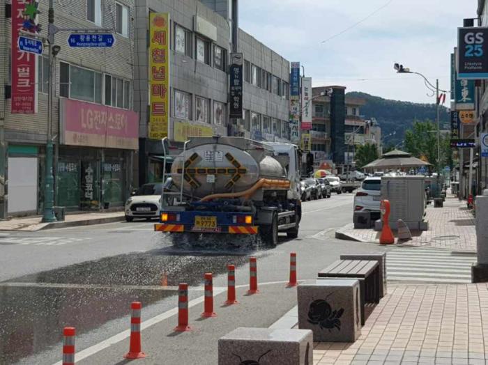 (영양군=경북온뉴스) 임성철 기자 = 7월 중순 들어 폭염이 본격적으로 시작됨에 따라 영양군은 군민들의 체감온도 저감 및 폭염피해예방을 위하여 21일부터 시가지 도로 살수를 위한 차량을 가동하기 시작한다고 밝혔다.