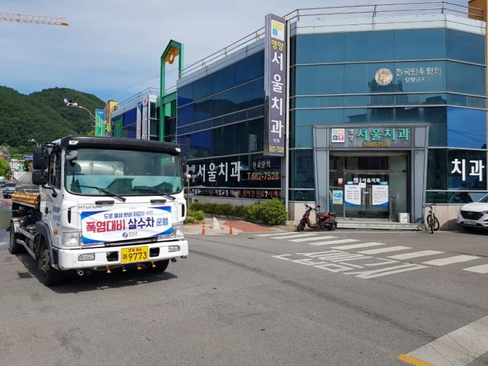 군에 따르면 21일부터 8월 중순까지 폭염 특보(주의보, 경보) 발효시 오전 9시부터 18시까지 8톤 살수 차량 1대를 임차 및 가동, 기상상황에 따라 탄력적으로 날짜를 조정하여 영양읍 주요 시가지에 살수작업을 실시할 예정이다.