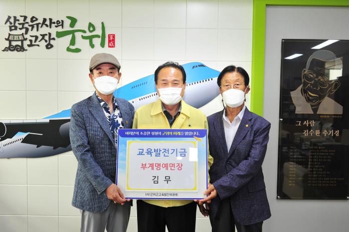 김무 명예면장은 기탁식에서 “코로나19로 모두가 힘든 가운데 군위가 명품교육 도시로 발돋움하는데 보탬이 되고자 한다”며 “군위지역 인재육성을 통해 더욱 발전된 지역의 모습을 기대한다.”고 말했다.