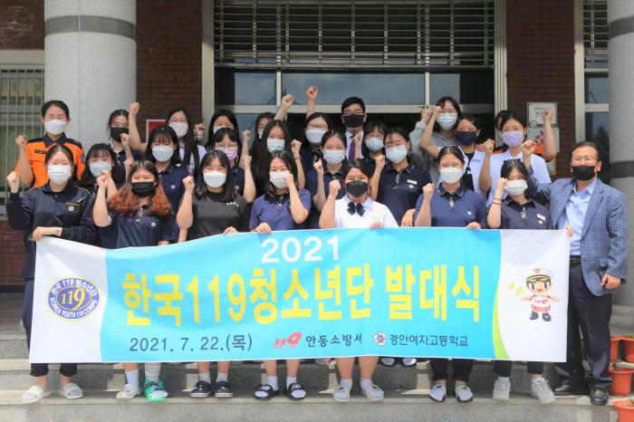 (안동119=경북온뉴스) 김승진 기자 = 안동소방서는 지난 22일 13시경 경안여자고등학교에서 ‘2021년 경안여자고등학교 한국119청소년단 발대식’ 행사를 가졌다.