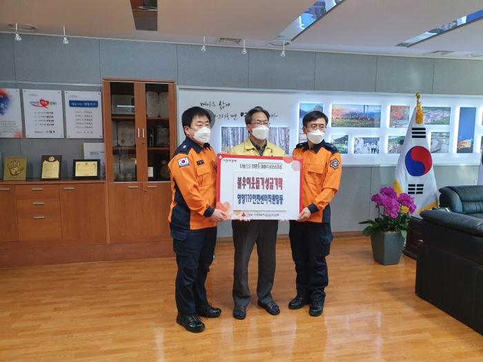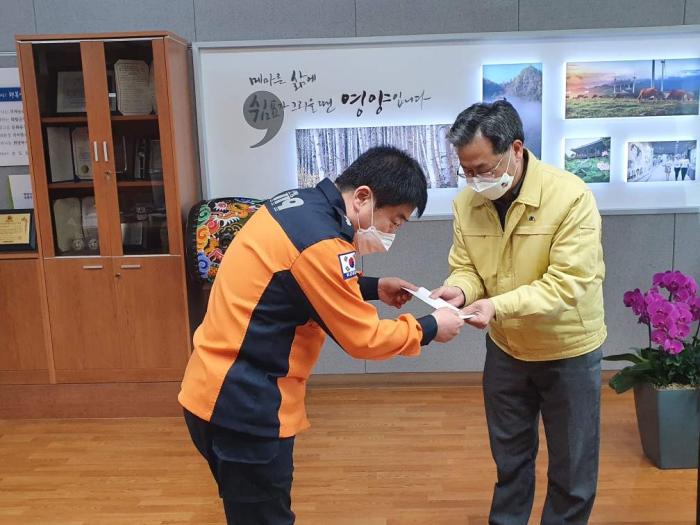 이번 성금은 코로나19로 생활의 어려움을 겪고 있는 소상공인과 힘겹게 추운 겨울을 나고 있는 취약계층에 도움이 되고자 영양119안전센터 직원들이 십시일반 마음으로 모은 정성이다.