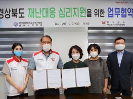 (경북적십자사=경북온뉴스) 임윤분 기자 = 한국상담심리교육복지학회 경북지회(지회장 김정인)와 대한적십자사 경북재난심리회복지원센터(센터장 고홍원)는 지난 27일, 대한적십자사 경북지사 회의실에서 ‘재난경험자의 정신적·심리적 안정을 위한 업무협약’을 체결했다.