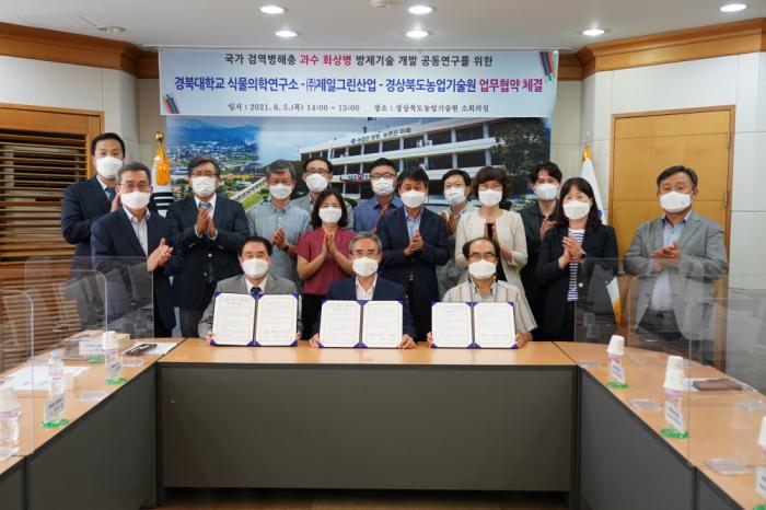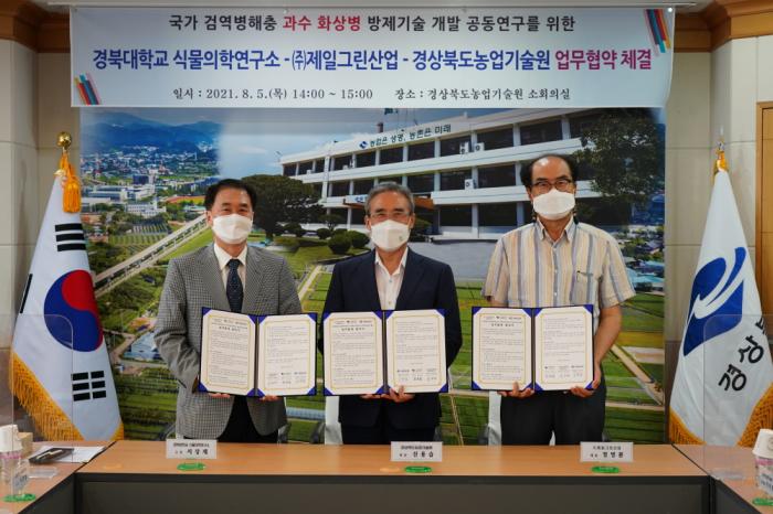 경상북도는 5일 오후 경북농업기술원에서 경북대학교 식물의학연구소, 제일그린산업과 3자간 상생협력을 위한 업무협약을 체결했다.