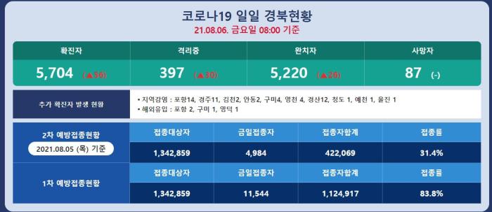 경상북도에서는 5일 코로나19 확진자 국내감염 52, 해외유입 4명이 신규 발생했다.