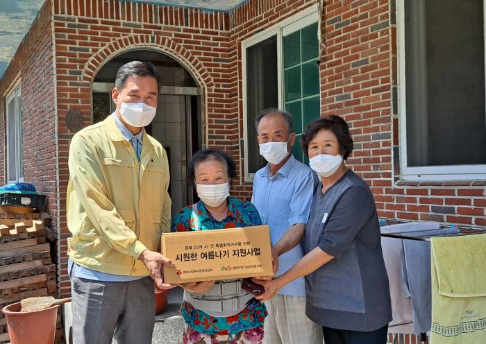 군위군 효령면 지역사회보장협의체(공동위원장 박시형, 이화익)는 지난 6일 전국 대부분의 지역에 폭염경보가 발효된 가운데 관내의 취약계층 32가구에 ‘시원한 여름나기’ 물품 꾸러미를 전달했다.