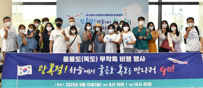 경상북도는 15일 광복 76주년을 맞아 대구경북신공항 이전지 선정 1주년을 기념하고 2025년 개항을 목표로 건설 중인 울릉공항 홍보를 위해 대구공항을 출발해 동해안과 울릉도·독도 상공을 돌아오는 ‘대구-울릉도(독도) 무착륙 비행 행사’를 가졌다.
