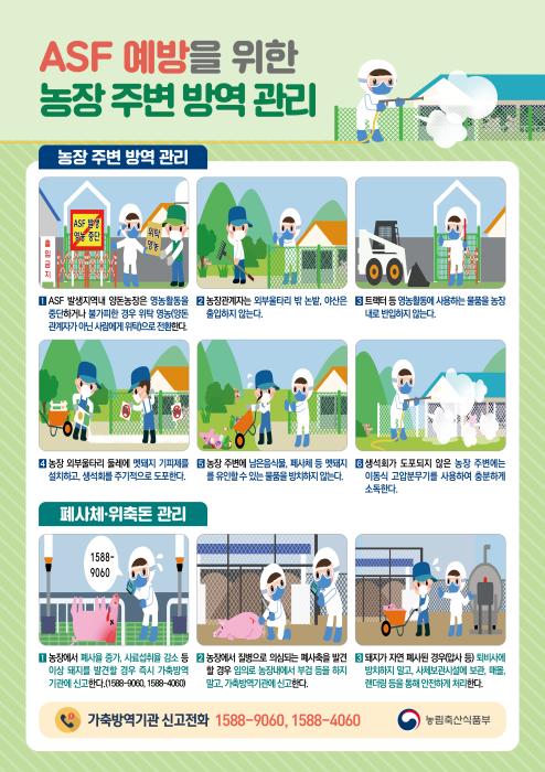 안동시는 이번 ASF발생에 따라 8월9일(월) 오후2시에 계획되어 있던 “양돈농가 축산차량통제 및 8대 방역시설 설치 교육”을 전면 취소하고 농가 모임 등을 금지해 줄 것을 당부했다.