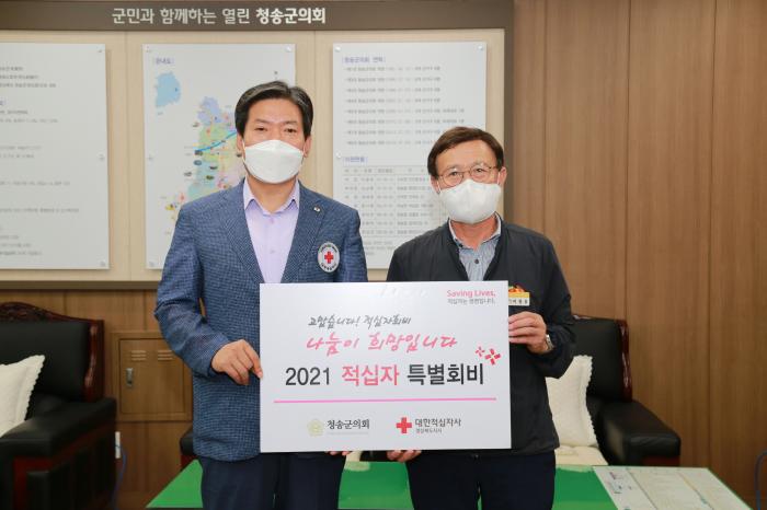 청송군의회는 17일, 의장실에서 대한적십자사 경북지사에 적십자 특별회비를 전달했다.