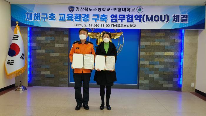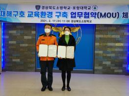 (경북소방학교=경북온뉴스) 김광열 기자 = 경상북도소방학교는 지난 17일 재해 구호 공동 연구와 인적 교류 협력을 위해 포항대학교와 업무협약(MOU)을 체결했다.