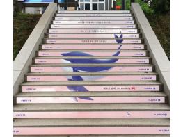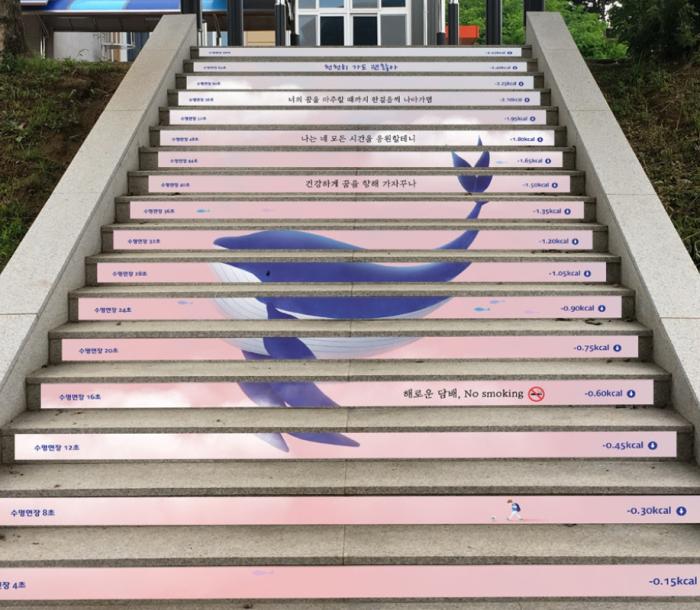 금연·건강계단은 교내 계단에 네 가지 건강 테마(신체활동, 금연, 영양, 정신건강)를 주제로 학생들의 눈높이에 맞는 건강 안내 문구, 스티커 등을 붙이는 식으로 설치됐다. 계단마다 소모되는 칼로리를 적거나 ‘수명 연장 8초’ ‘수명 연장 12초’ 등을 기록해 건강에 관심을 갖도록 했다. 또 ‘넌 할 수 있을 거야’‘건강하게 꿈을 향해 가자꾸나’ 등 계단 걷기를 유도하는 문구도 적혀 있다.