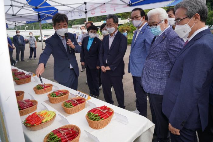 이날 수미향, 고은빛, 고홍빛, 관상용 고추 등 자체 육성 11품종과 병 저항성 품종 25종 등 전시한 품종을 둘러보고 스마트팜 재배기술을 적용한 ‘고추 수경재배 하우스’를 관람하며 디지털 농업에 대한 의견을 나누는 시간도 가졌다.