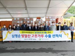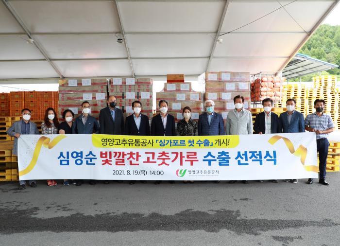 영양고추유통공사는 8월 19일 (주)기룸(대표 장윤정)과 심영순 빛깔찬 고춧가루 싱가포르 첫 수출을 시작했다. 이 날 영양군에서는 오도창 영양군수, 장영호 영양군의회 의장, 경북도청(외교통상과장) 관계자들이 참석했다.