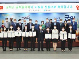 군위군은 19일 군위군청 대회의실에서 신규공무원 9명에게 임용장을 수여하고 간담회를 개최했다.