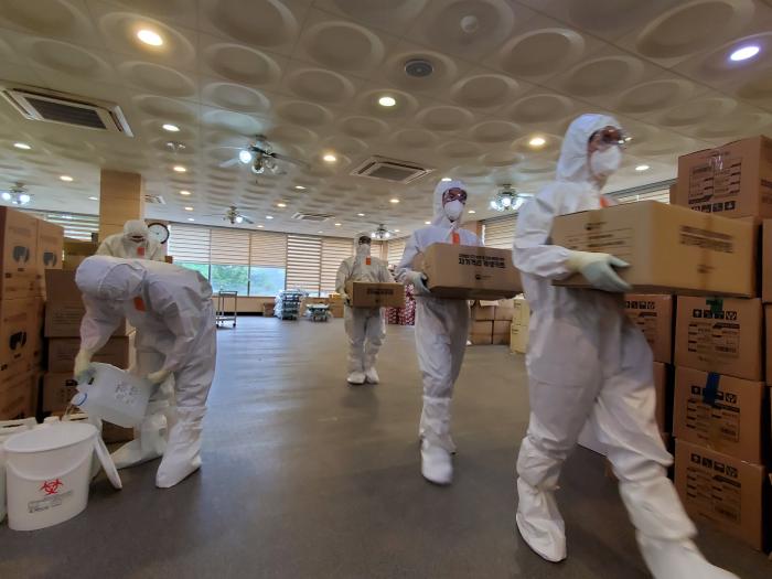 박한석 중위 등 8명으로 구성된 50사단 현장지원팀은 생활치료센터에서 환자들의 식사지원과 생필품 전달, 센터 운영에 필요한 물품 운반 등의 임무를 수행하며 생활에 불편함을 최소화함과 동시에 시설 방역도 병행하며 의료진과 경증환자들이 오직 치료와 회복에만 전념할 수 있는 여건을 만들고 있다.