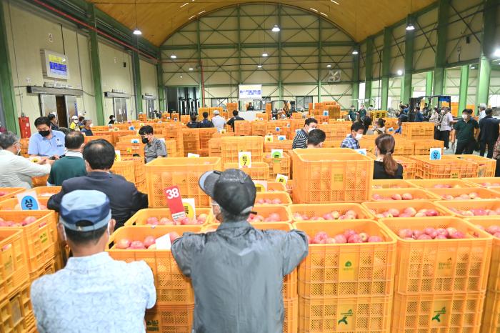 청송사과유통센터(대표 백남진)가 8월 23일 ‘청송군 농산물산지공판장’을 개장하고 2021년산 사과경매를 시작했다.
