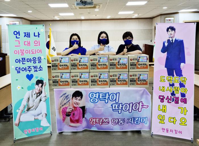 영탁쓰 안동지킴이 회원들은 “이번 후원은 일회성에 그치는 것이 아닌 정기적인 후원으로 저소득층뿐만 아니라 공적지원을 받지 못해 어려움을 격고 복지사각지대에 많은 도움이 되기를 바란다.”라고 전했다.