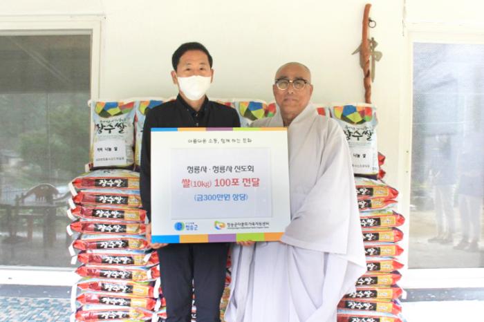 청송군 파천면에 소재한 청룡사(주지 법경)와 청룡사신도회에서 지난 23일 지역 다문화가족들을 위해 쌀 100포(300만원 상당)를 청송군에 기탁했다.