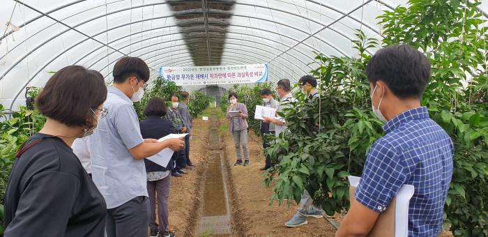 이날 평가회는 무가온 재배에 있어서 안정적인 수세확보와 적정 착과량을 구명하고 칠곡을 비롯한 경북 남부지역에 재배기술을 보급하기 위해 마련됐다.