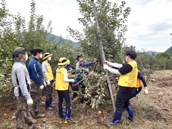 지난 8월 24일 포항시를 강타한 태풍은 죽장면의 저지대 농지와 주택에 큰 피해를 입혔고, 포항시의 피해복구에 힘을 보태기 위해 청송군 자원봉사단체인 청송군지역자율방재단(단장 권영락), 청송군의용소방연합회(회장 임일지), 청송시니어자원봉사단(관장 황진호) 등은 농작물 피해가 극심한 현장을 찾아 넘어진 과실수를 세우는 등 구슬땀을 흘렸다.