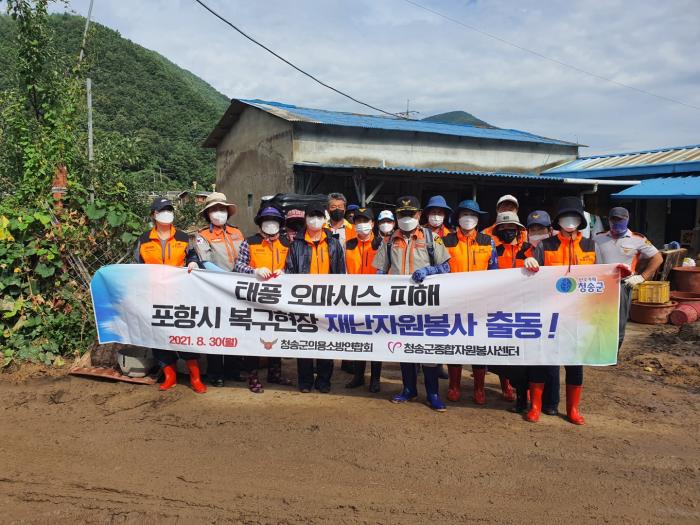 안동소방서 청송군의용소방대연합회는 지난 30일 제12호 태풍 “오마이스” 집중호우에 따른 침수피해를 입은 포항시 죽장면 일대를 방문해 수해복구 활동을 펼쳤다.